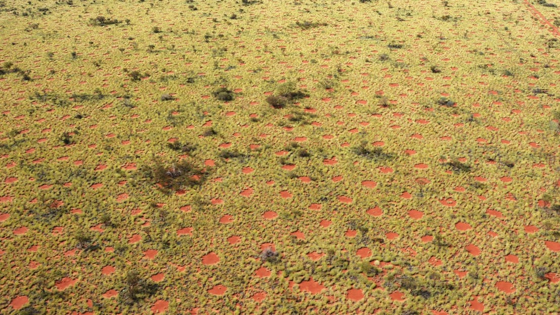 ▼澳洲和非洲地區出現的「仙女圈」:草地中裸露出園片狀的紅沙土,周圍被高高的野草環繞,像是仙女們聚會的地方一樣。