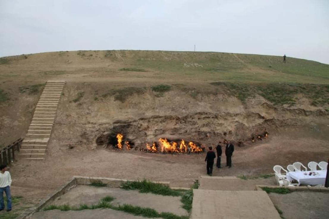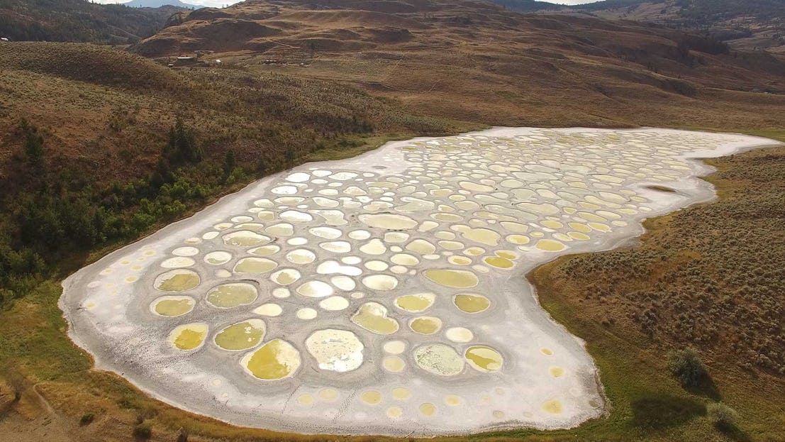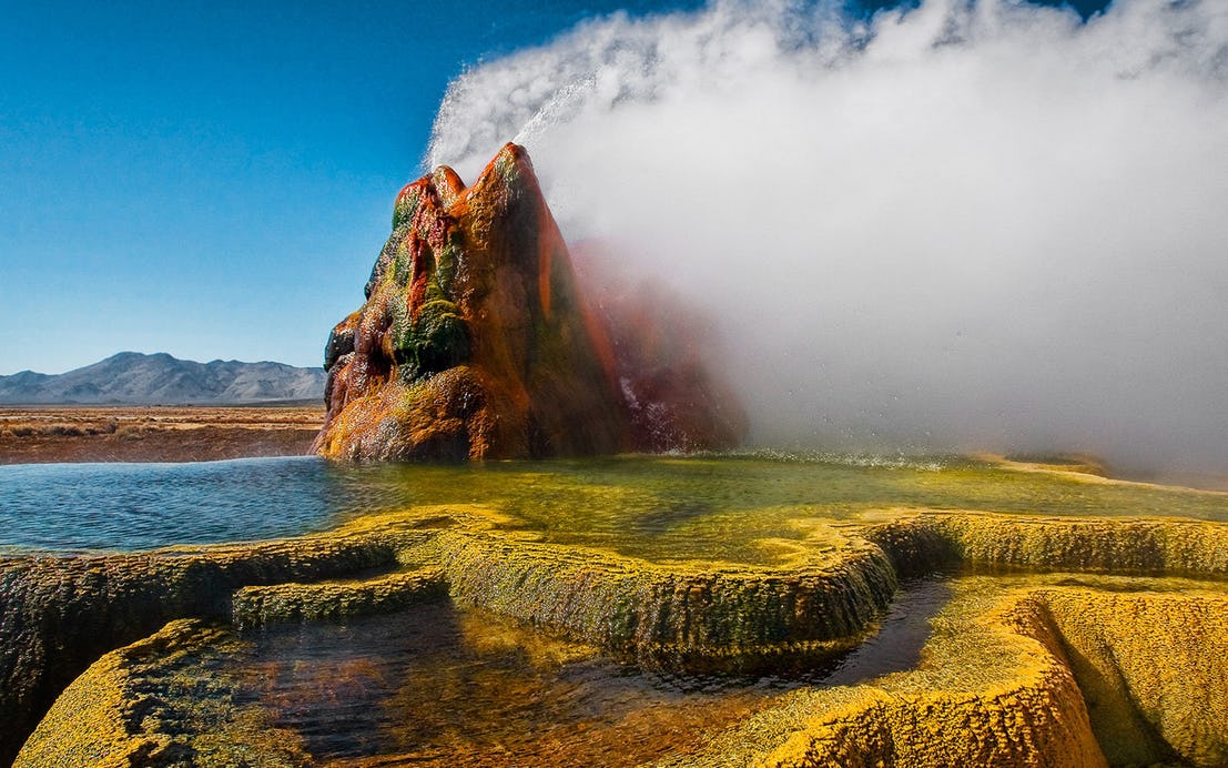 ▼美國內華達州的「飛噴泉」,地熱實驗井噴發了二成。水中的礦物質不斷噴出,累積成周圍的小土丘。