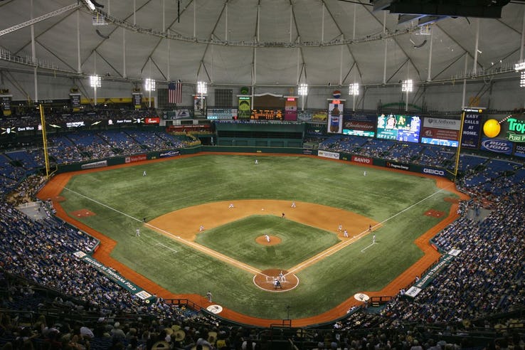 這個體育館乍看之下沒什麼問題,但是如果你是棒球選手或是專業棒球迷,就會發現天花板的設計根本就不適合出現在拿來舉辦棒球比賽的體育館!