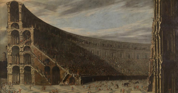 當時的古代羅馬人因為隨便和急著要蓋好這座競技場,用的都是最便宜的建築材料,當一大群民眾湧進去…瞬間就撐不住倒塌了當時約有20000至50000人經歷了人生最可怕的瞬間!建築師的下場也很慘,直接被流放到遠方。