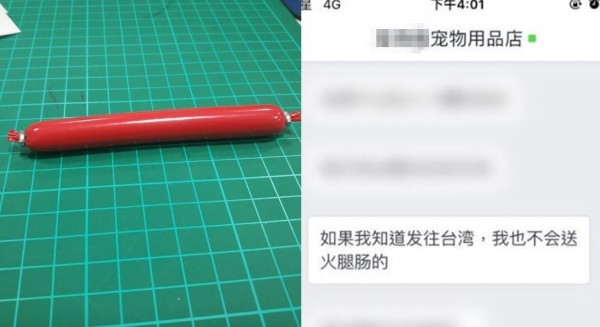 ▼為了避免台灣畜牧業受到波及,防檢局也透過警報緊急通知豬瘟的嚴重性。但百密一疏,日前就有網友在淘寶購買寵物用品,沒想到店家附贈一根肉腸,若是隨意丟棄,就可能混在廚餘中,被豬隻吃下肚。