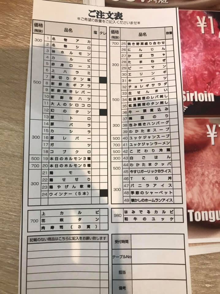 ▼這名網友在爆料公社中抱怨,自己早前到東京旅遊時來到新宿歌舞伎町一家燒烤店用餐,因為語言不通於是店員給了他們中文菜單。後來用餐中想加點時順手拿起了鄰桌的點餐紙,才驚覺日文菜單跟中文菜單價錢有出入,例如牛舌在中文菜單的價格是1000日圓(約新台幣272元),而日文版只要500日圓(約新台幣136元),令他非常傻眼。
