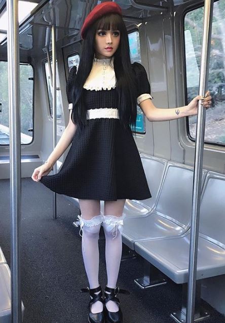 ▼Kina Shen是一位留學生,很早就去洛杉磯學習了。她還是一位化妝師,就算平時也會打扮成芭比娃娃的樣子。