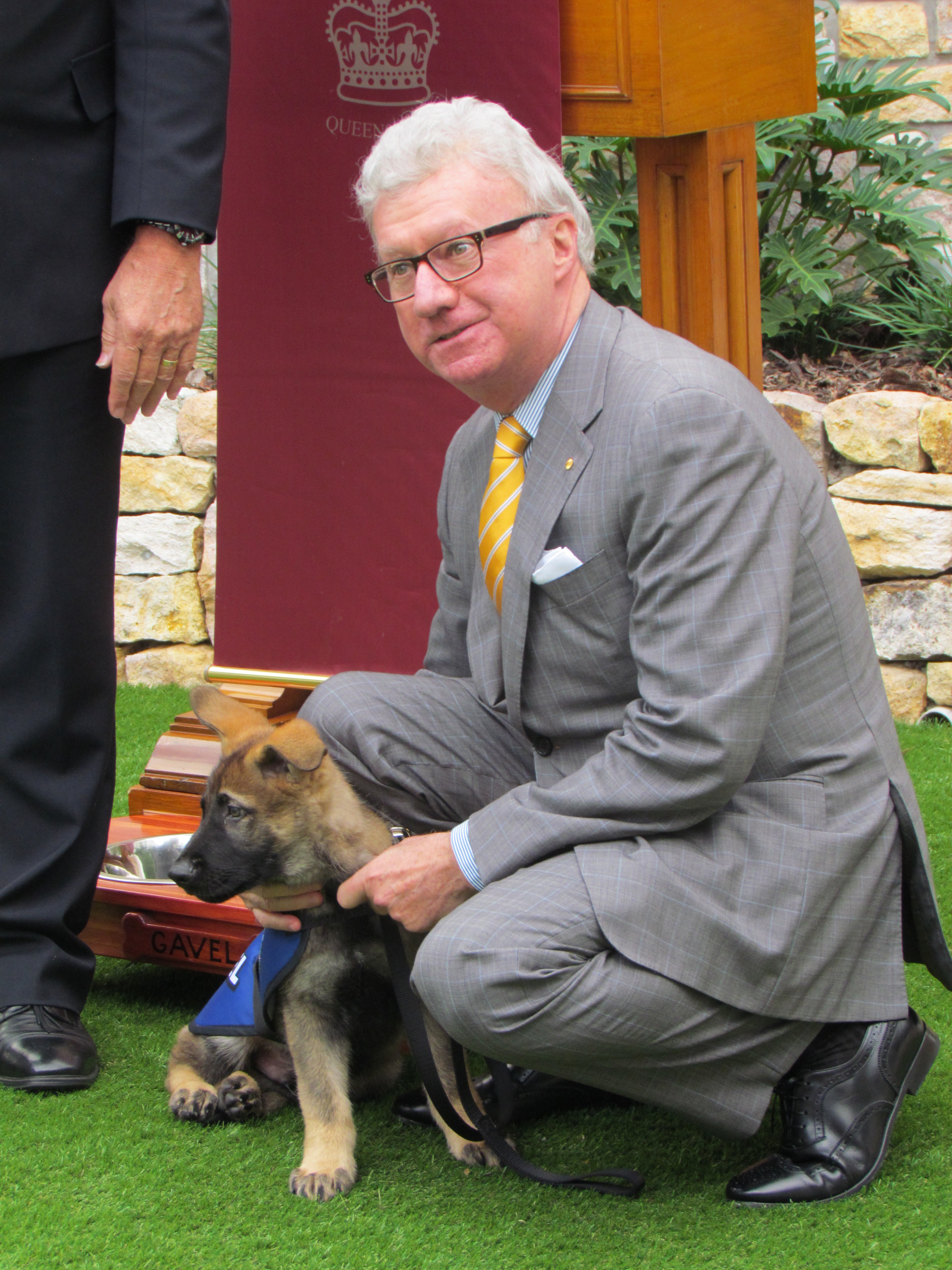 ▼在當時的警犬介紹記者會上,昆士蘭州的州長還親自接見Gavel。