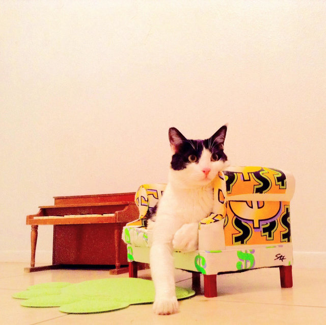 ▼第一次萌生打造貓咪的「豪華客廳」這個念頭是見到這架兒童鋼琴和沙發的時候。克里斯汀說:「如果我為貓咪們打造一個小房間會很有趣的吧?」