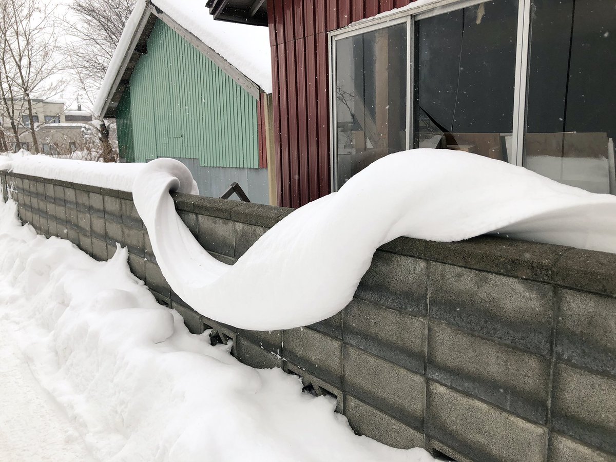 2018年12月18日雪是冬天最唯美浪漫的存在。雖然冰冷,但是緩緩飄落的雪花和銀裝素裹的世界總是令人感覺開心舒暢,每到雪天網友也總會忍不住曬出美麗的雪景。日本一名網友@8da0b6在推特上分享了一張雪景照片,照片中一條形狀奇怪的積雪引發網友熱議。