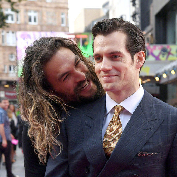 ▼在《自殺突擊隊》的首映式上,他還偷襲超人亨利卡維爾(Henry Cavill)。在鏡頭前超注重形象的亨利卡維爾都忍不住笑了。