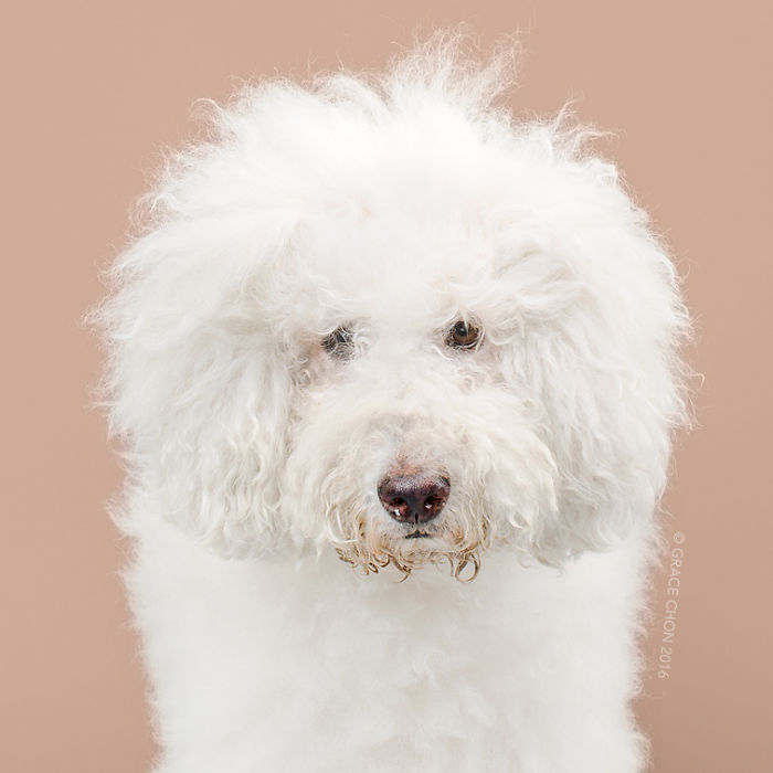 攝影師Grace Chon特別強調,她請來的狗狗都並未以按造品種常見理毛方式進行理毛,而是在觀察每隻狗狗不同的特色後,自由地發揮,讓狗狗呈現獨一無二最可愛的模樣。果然每隻狗狗在被理毛後,看起來都脫胎換骨,表情跟眼神也都亮了起來,搞不好正是因為他們自己也知道現在自己變得非常漂亮而感到很開心呢!