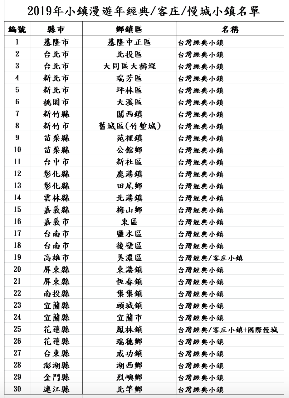 2018年12月19日2019年已經被交通部觀光局訂為小鎮漫遊年,勢必要讓外國遊客深入小鎮,體驗非一般的行程。11月8日開始的小鎮票選活動也已經結束,還有秘密客親自到現場勘查、認真評分,終於選出30個可以驚艷外國人的小鎮!