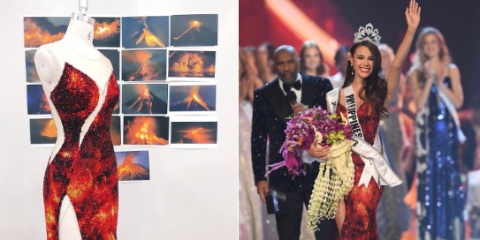 ▼在晚禮服環節,葛瑞身穿一襲搶眼的紅色禮服,其靈感來自於菲律賓知名的「馬榮火山」(Mayon Volcano),美艷動人又別具意義。她表示,身為環球小姐就像「舉著一支燃燒的火把」,期盼自己能將這份希望之火舉得高高的,並努力照亮全世界的人們。