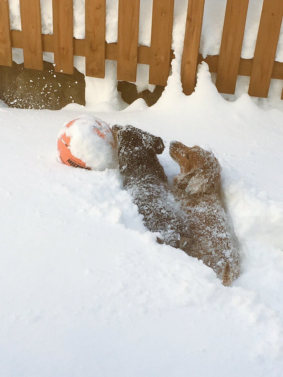 看到這些大大小小的雪團不用擔心,這是狗狗們玩得開心的證據,主人只要幫牠們摘下來就好了。看來這兩隻狗狗在雪地中瘋玩了很久,否則不會變成這樣。軟綿綿的雪地就是狗狗們的天堂,看到牠們在雪地中撒歡的模樣,感覺世界都美好起來了。