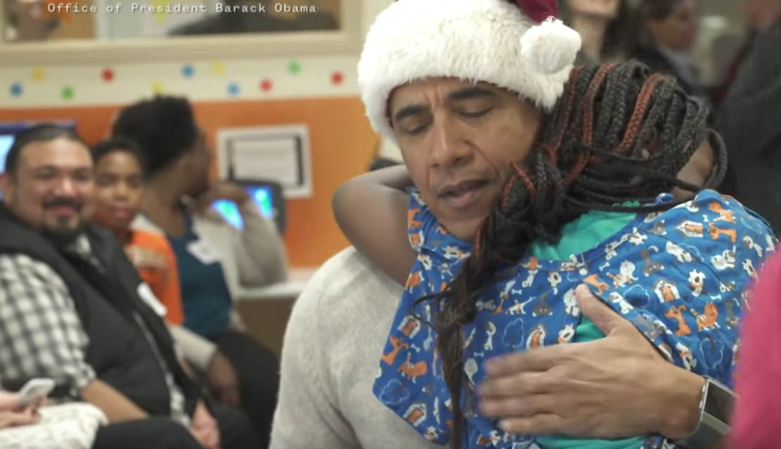 歐巴馬變聖誕老人到兒童醫院送暖 孩童們「抱緊處理」全哭了