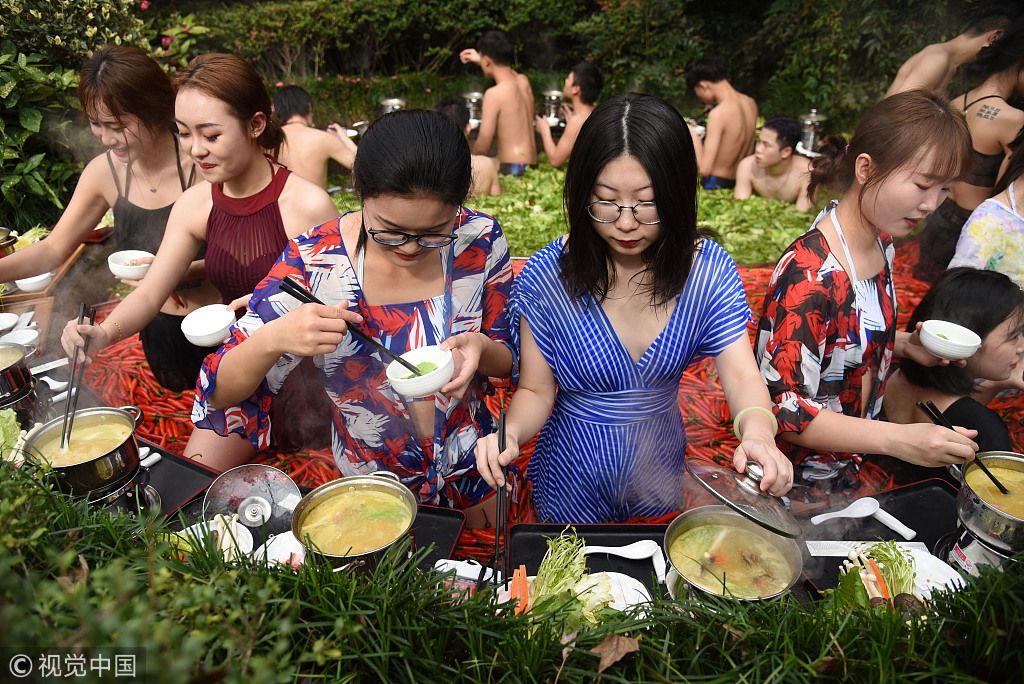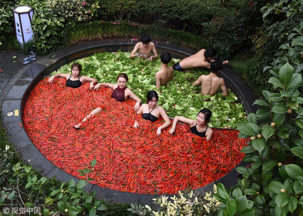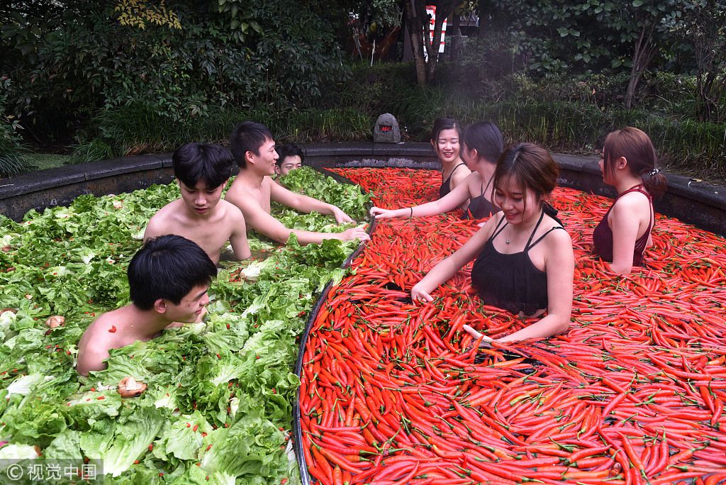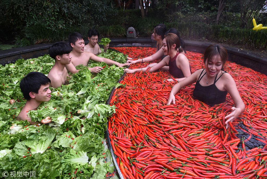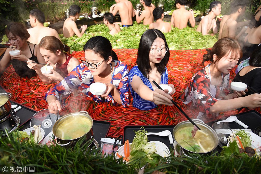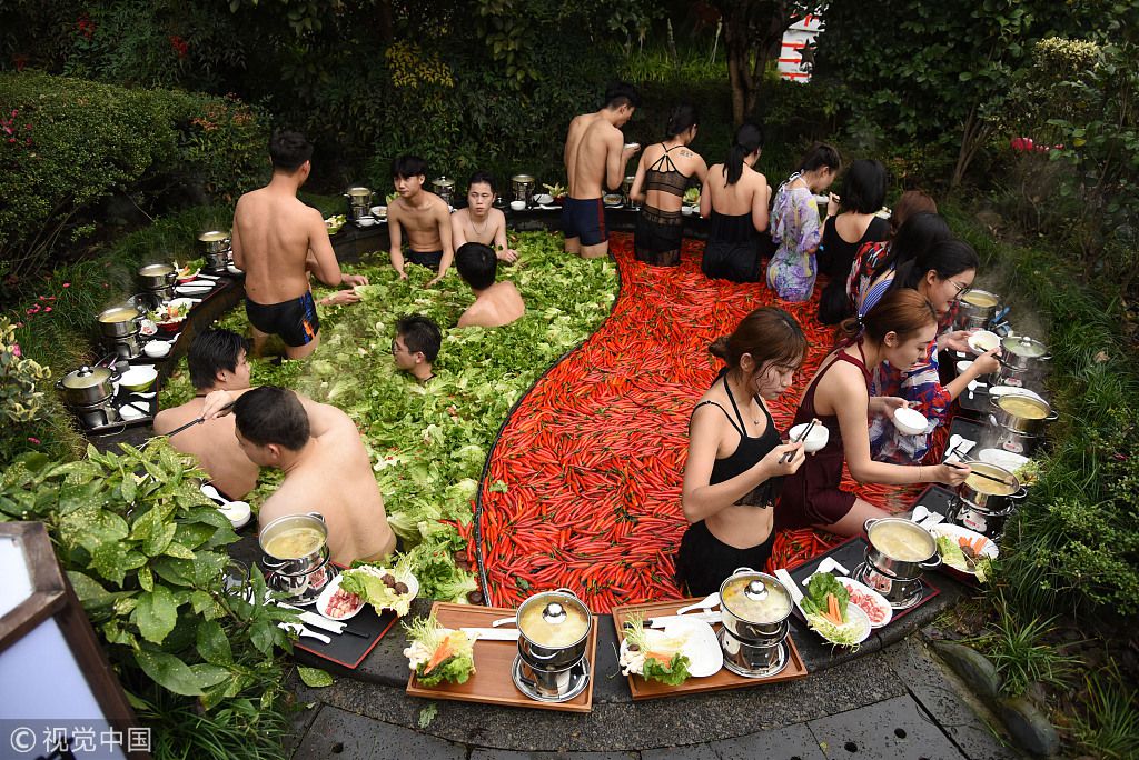 下半身跟辣椒泡在一起 狂翻天「鴛鴦鍋溫泉」讓食客邊泡邊涮肉吃