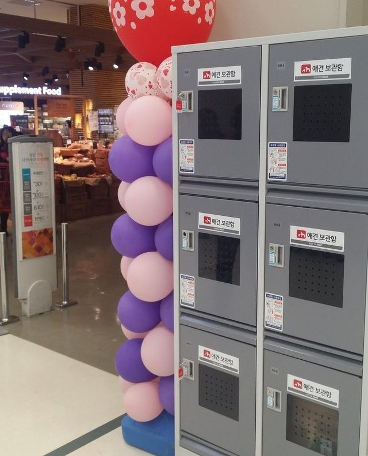▼賣場外還有暫時寄放狗狗的置物櫃。