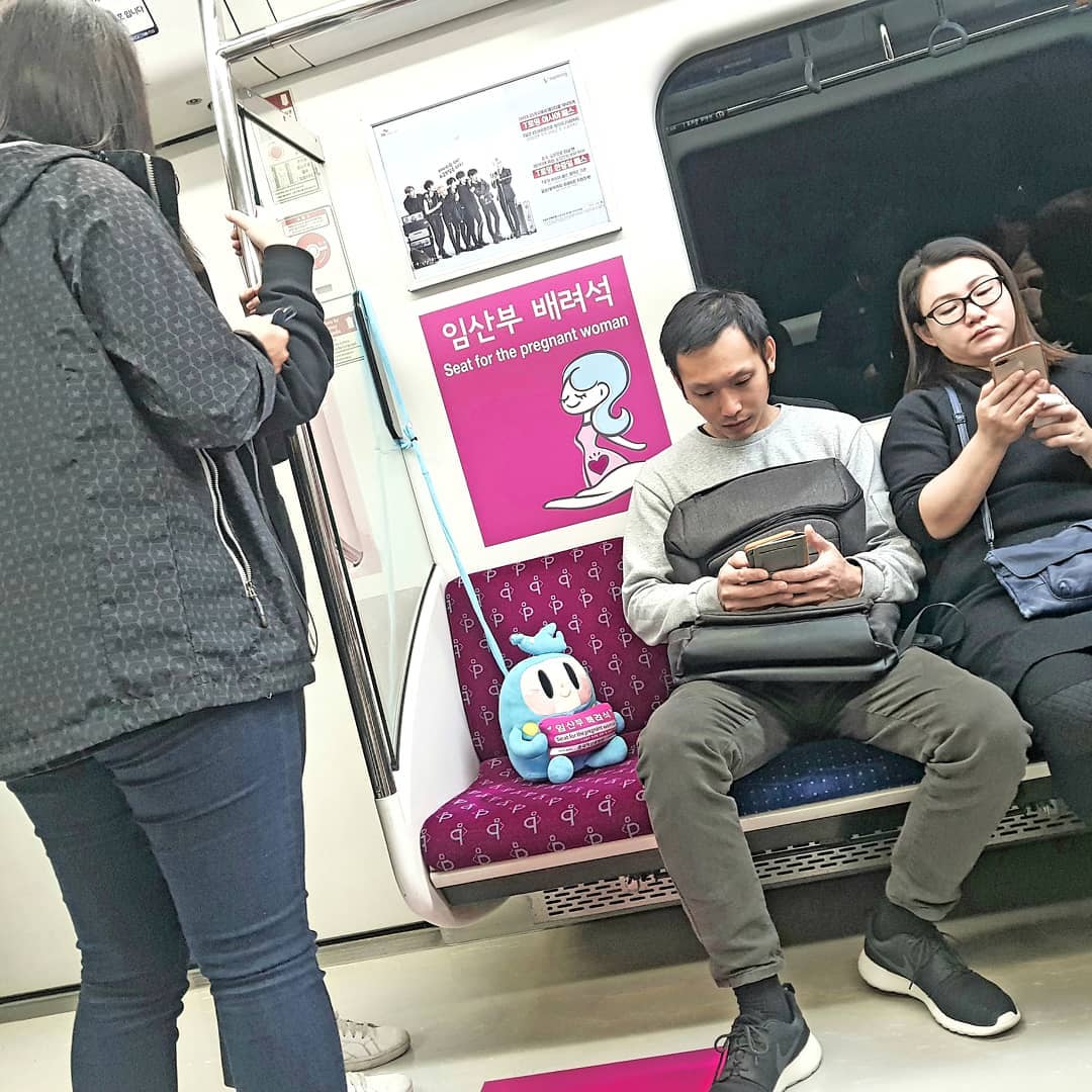 ▼韓國地鐵上有專屬留給孕婦的位子,一般人寧願站著也不會過去坐。