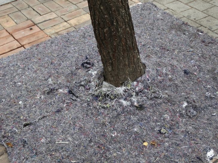 ▼為了讓樹能夠「保暖」,他們在冬天會將數根覆蓋起來。