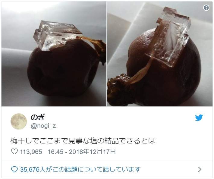 梅干醃10年竟然長出「絕美立方體結晶」 網友看傻眼:可以進博物館了…
