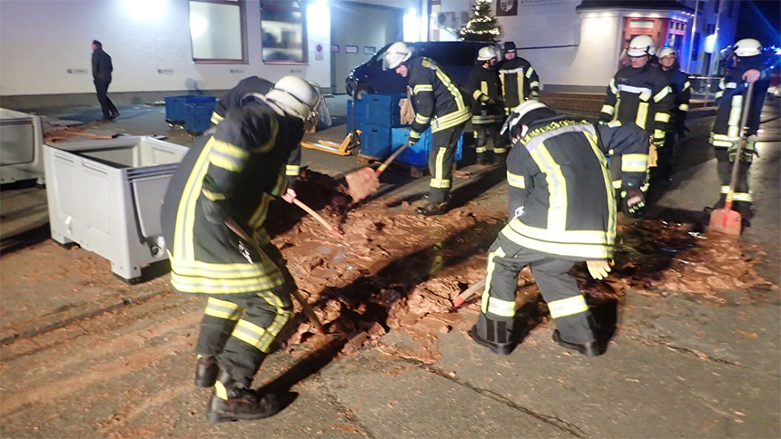▼在10日晚間,德國韋爾小鎮DreiMeister巧克力工廠的原料由於儲物罐洩漏,導致約1噸的液態巧克力流到路面上,由於天氣寒冷,巧克力很快在路上結成一塊約10平方米的「巧克力脆皮」。