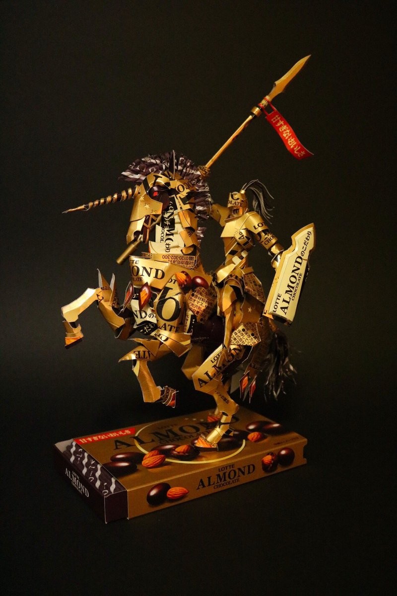 ▼「巧克力紙盒」做成的機甲,滿滿的機械感。
