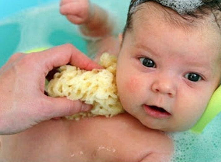 ▼剛出生的寶寶最好用天然海綿幫他洗澡。