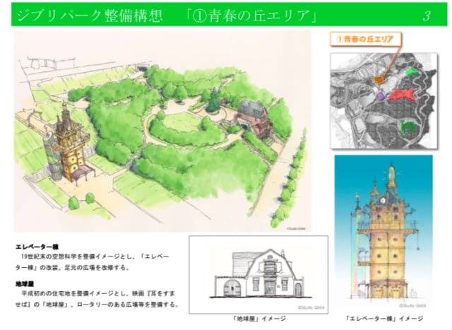 愛知縣政府表示,青春之丘區、吉卜力大倉庫、森林步道區將於2022年開放,魔法公主故鄉區和魔女之谷區將在2023年開放。主題公園的正門入口會以《霍爾的移動城堡》場景的建築迎接訪客,粉絲們做好準備去體驗動畫中的夢幻世界吧~