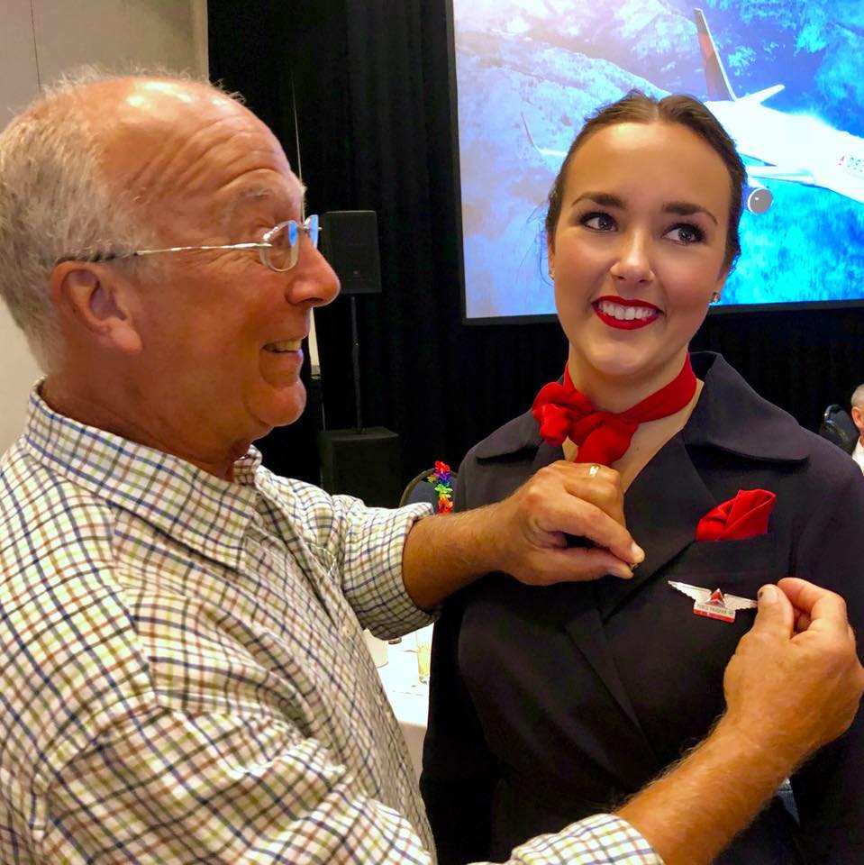 ▼達美公司規定,員工和符合條件的家庭成員能夠享有旅行優惠,所以Hal在其中一趟航班上坐了頭等艙。Pierce在臉書上感謝公司提供的優惠,讓爸爸可以舒適陪自己過節。她還感謝Mike,「讓我們知道這件事有多酷」。