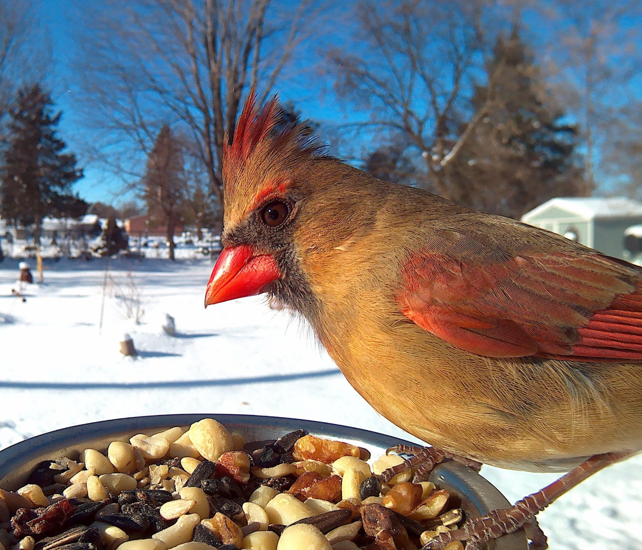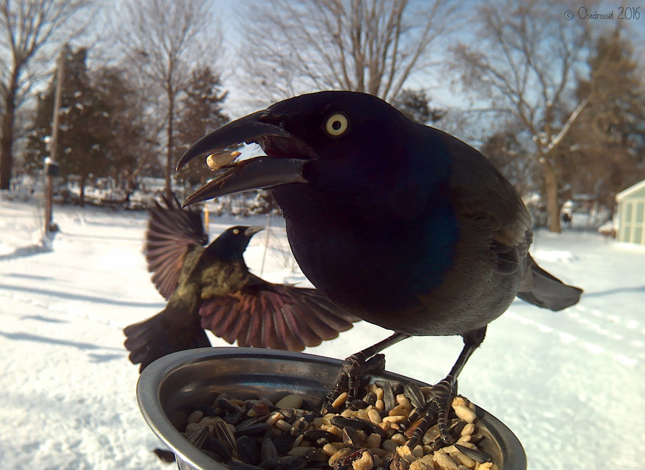 ▼這之前來覓食的鳥兒有些霸道,所有的食物都被蓋住了。