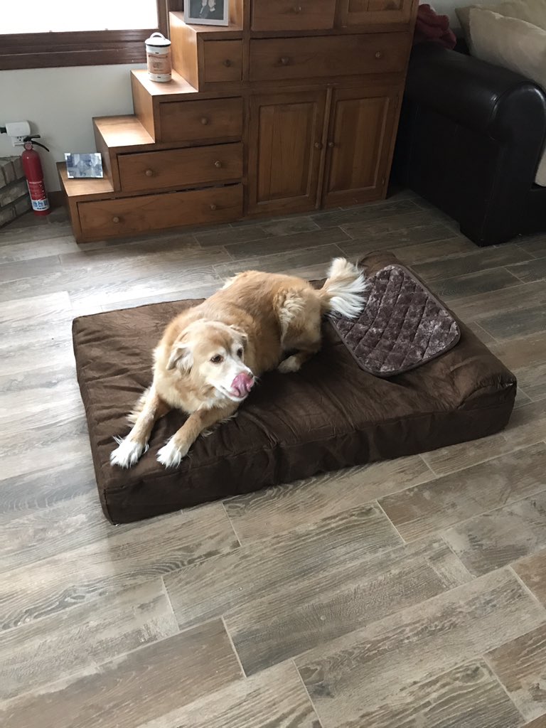 ▼不久之後,pae幫Kenny買了一張新的狗床,這次Kenny終於可以舒舒服服的躺著了。