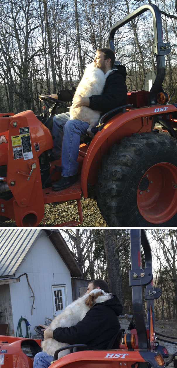 ▼想和主人一起坐拖拉機,但聲音好恐怖,還是求抱抱吧。