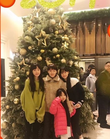 ▼Elly還貼出了3姊妹與媽媽的合照。母女4人站在聖誕樹前,小S穿著駝色外套,雖然沒有化妝,但還是非常漂亮。不僅Elly,Lily和許老三都長高很多,讓人眼前一亮。