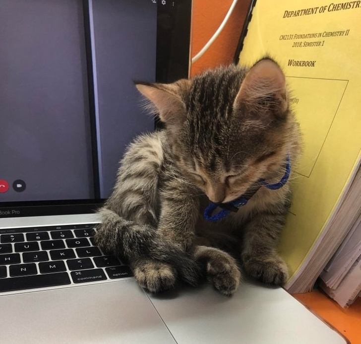 ▼19.飼主表示:「牠正在我的電腦上打瞌睡」
