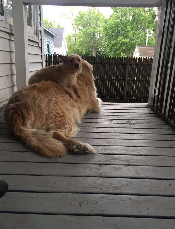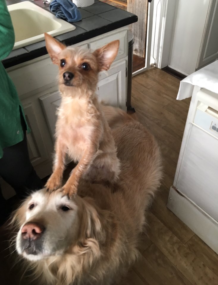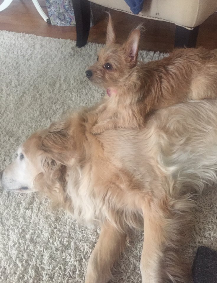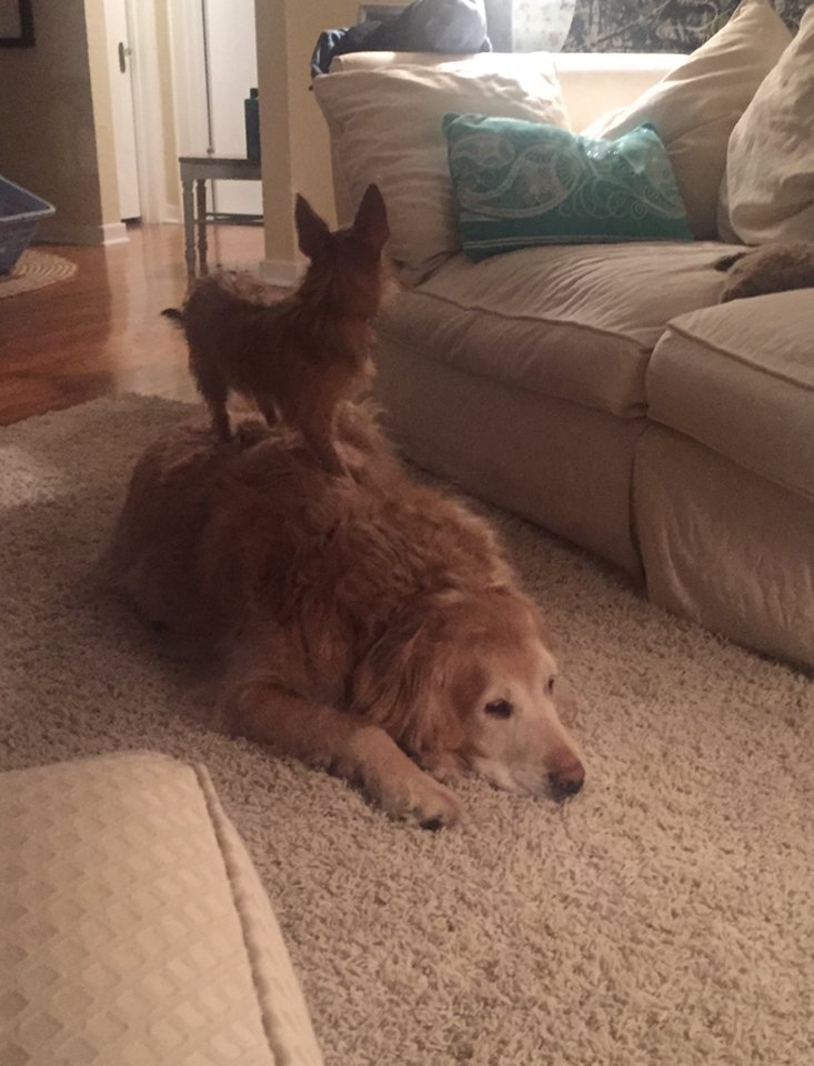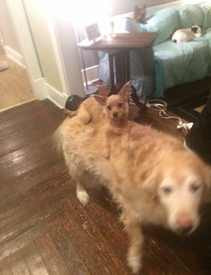 就仗著有哥哥寵~ 小隻汪「把大隻汪當坐騎」到處跑:我長高高啦