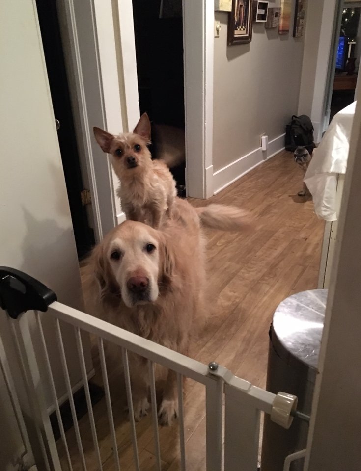 ▼貝拉的主人說:「貝拉跟我住,但是漢克跟我父母住。但是一見面的時候,兩隻狗就會形影不離-牠們很相愛!」