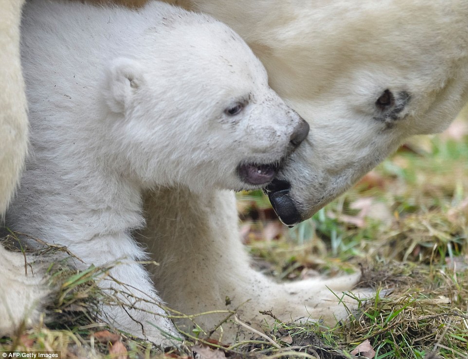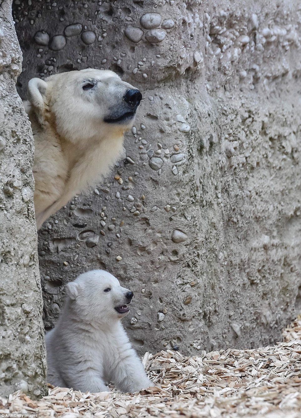 ▼這隻小北極熊是10歲的吉瓦娜生下的第三個孩子,在母子公開露面的時刻,吉瓦娜也時刻在旁邊保護著牠。