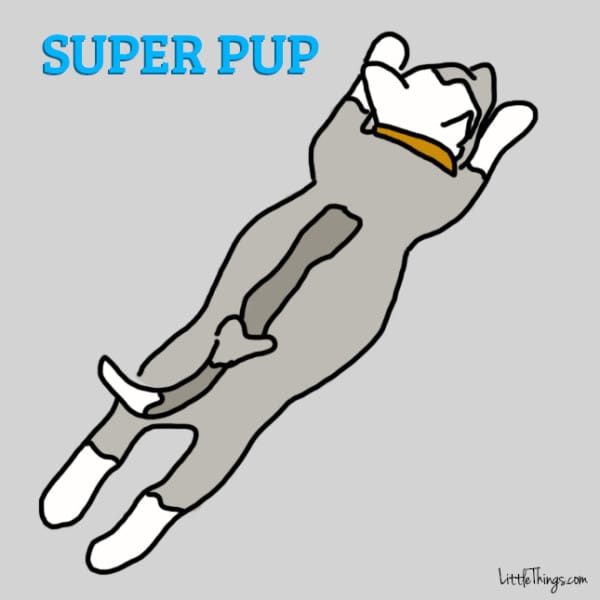 通常只有幼犬會有這種睡姿,如果長大後還是這樣睡覺,那代表牠的精力旺盛!主人可能需要還多一點時間陪牠喔!