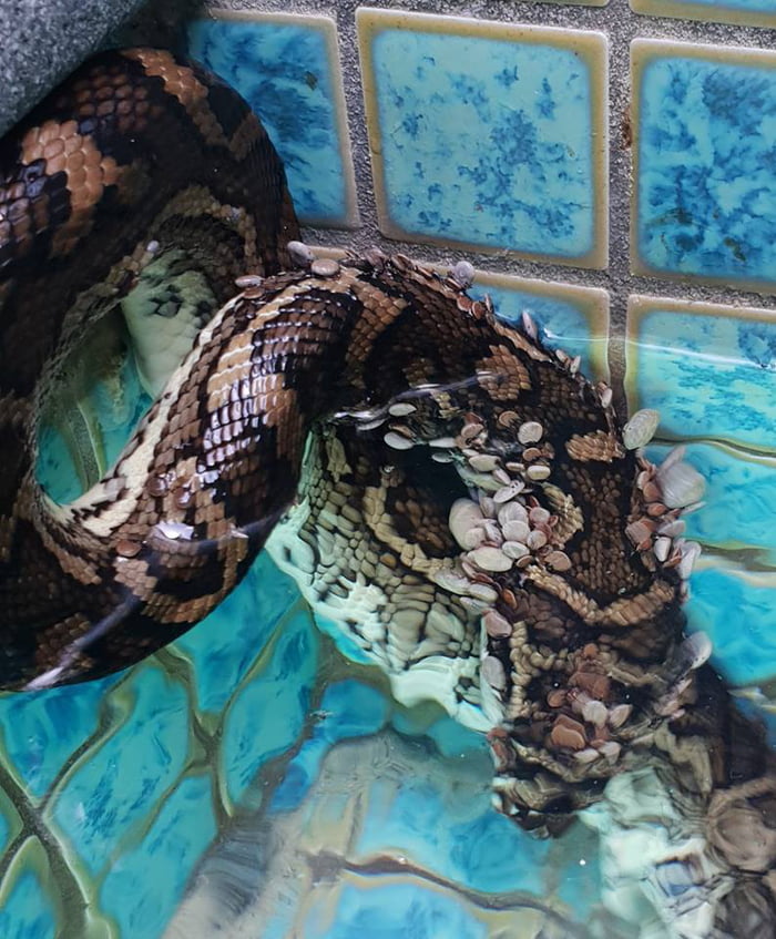 2019年01月13日當北半球處於一年中最寒冷的季節時,澳洲卻是夏季。這個季節蛇蟲鼠蟻出沒很正常。住在黃金海岸庫倫伽塔市(Coolangatta)的一對夫妻就在自家游泳池中看到了難以置信的一幕。只見一條蛇泡在水中,身體纏繞在水管上,牠的身上還有很多小石片一樣的東西。