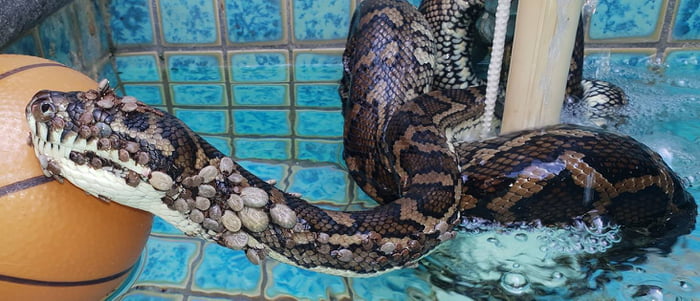 ▼「這條可憐的地毯蟒竟然和511隻壁蝨一起生活…」
