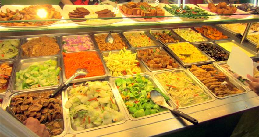 ▼這些超便宜的便當店,只要花50元可以買到「3菜1肉」,內用更是有炒麵和粥吃到飽。喝的部份也有甜的仙草、鹹的雞湯可以喝,想要省錢來這裡就對了。