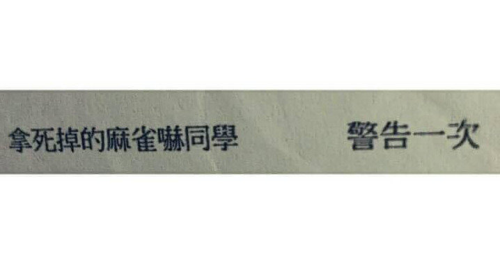 你以為上面這些記過理由很狂嗎?更多網友也跟著分享:「看過在廁所燒金紙的…」、「直接帶麻將到學校也很扯」、「英文課看國文也被記過」、「帶聖誕帽上課也被記過」、「我看過煮火鍋和幫朋友挖鼻孔被記警告的!」。當老師也真的不容易啊~每天都必須在學校忍受學生們的奇怪行為。你也有看過特別的記過理由嗎?