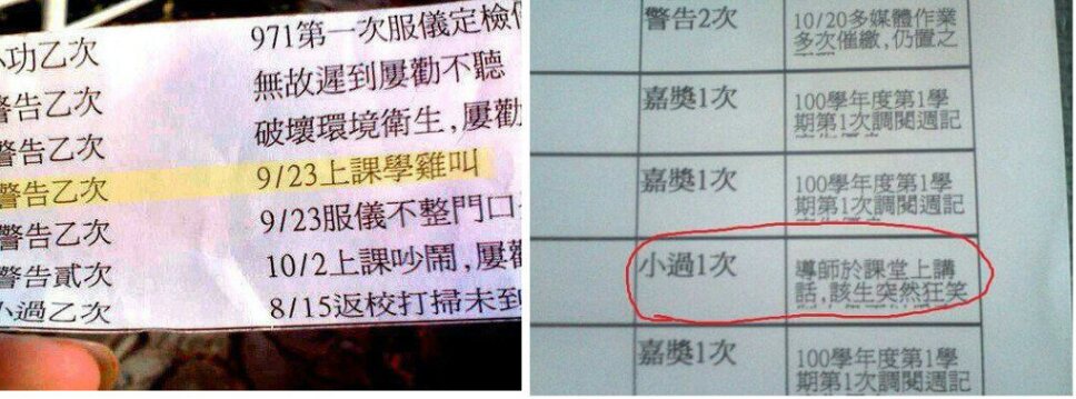 2019年01月17日學生時期大家最害怕的就是被老師記過對吧?但是偏偏就有很多學生喜歡挑戰老師,做出各種詭異離奇的行為,老師寫下的記過理由上傳到網路後,大家都笑到岔氣!你曾經也有很皮的時候嗎?下面的記過理由你也有幹過嗎?不准說謊喔!