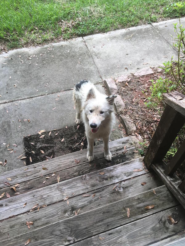 ▼網友Amiawifeorasword表示,當時她正在自家後院做防颱準備,恰巧跟一隻要過街的流浪狗對到眼,「我呼喚了牠,就像我會對其他狗狗做的一樣。牠似乎聽懂了,小心翼翼地走了過來。」