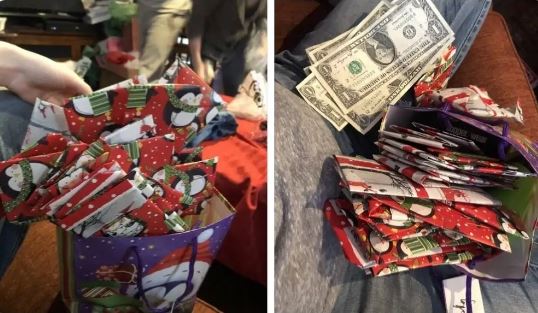 ▼「妹妹給了我50個紅包當聖誕節禮物,每一個紅包裡面都是1元。」
