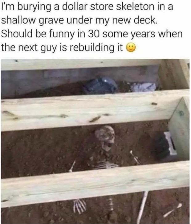 ▼「我去超商買了一具萬聖節骷髏,埋在我家角落,不知道30年之後的新任屋主裝潢的時候會是什麼反應。」
