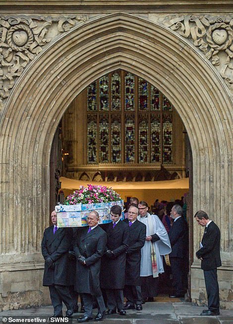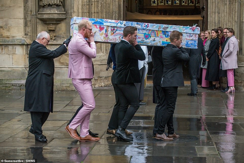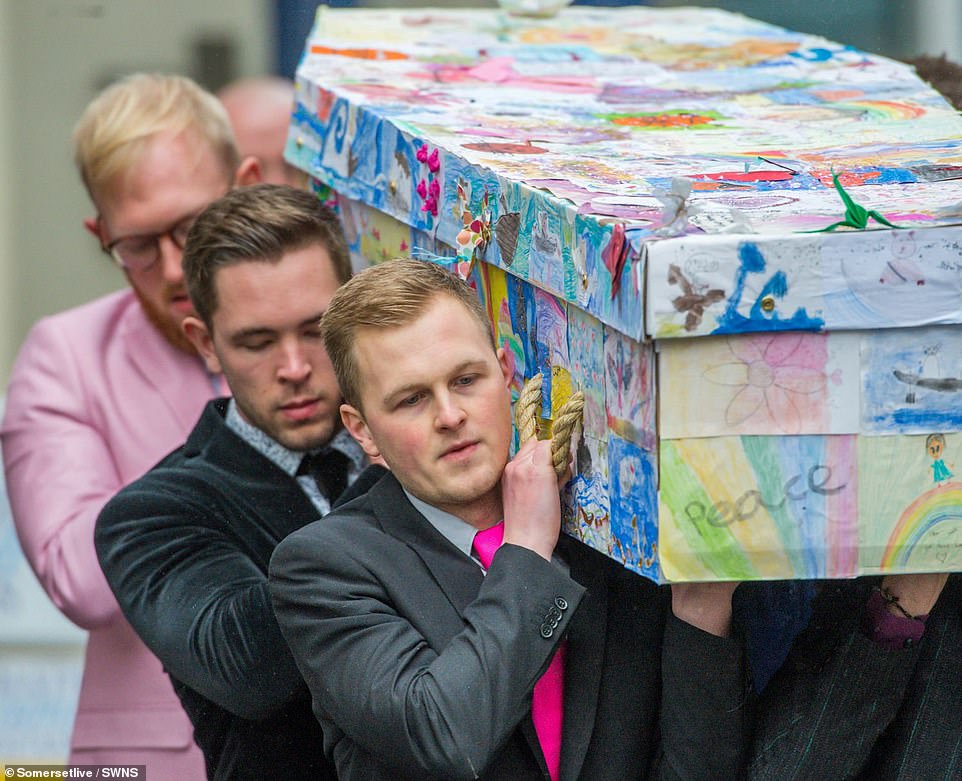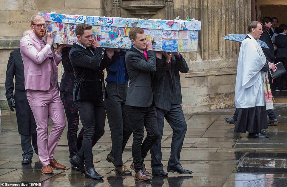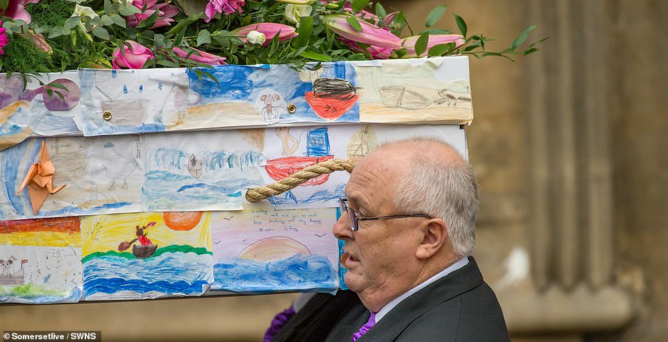 ▼這些畫作也被貼在Sue的棺材上,讓現場的氣氛多了一點樂觀和希望,就像校長最想留給孩子們的東西一樣。