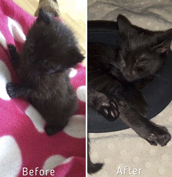 ▼9. 看到領養前後的對比照,就知道人類可以對街貓帶來多大的改變!