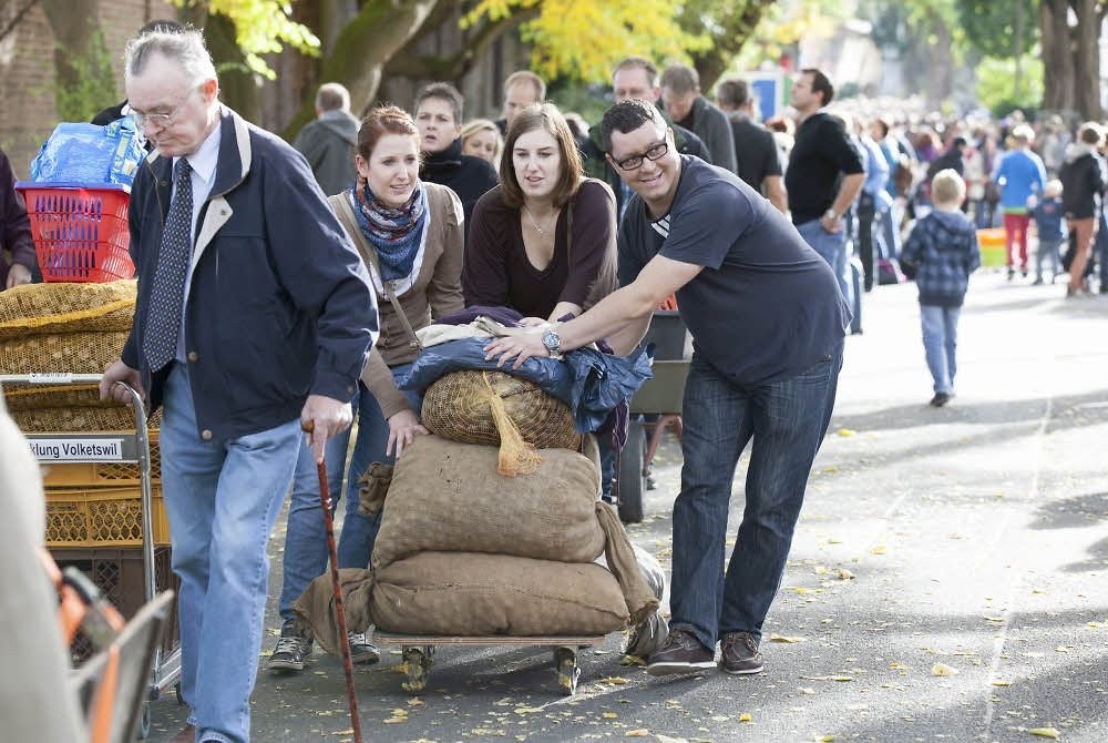 ▼這個一年一度的活動會在 HARIBO 的德國總部舉行,當天總部大樓外面都會擠滿了民眾,他們帶來了收集好的橡實與栗實,跟工作人員更換1公斤的小熊軟糖回家。