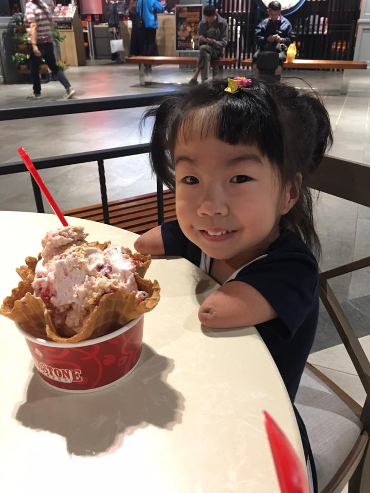▼根據《蘋果日報》的報導,又立的母親在懷孕期間進行了9次的超音波掃描,卻都沒有發現任何的異樣。結果在又立出生時才發現,她的右腳和雙手都已經萎縮剩下半截,就連左腳也只有3隻腳指頭。