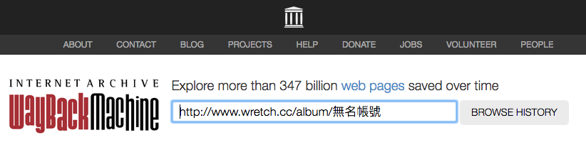 ▼然而,現在只要打開「WayBack Machine」就能重溫以前的記憶!打開後的第一步請在欄位輸入無名帳號,再按下「BROWSE HISTORY」(瀏覽歷史)就可以了。
