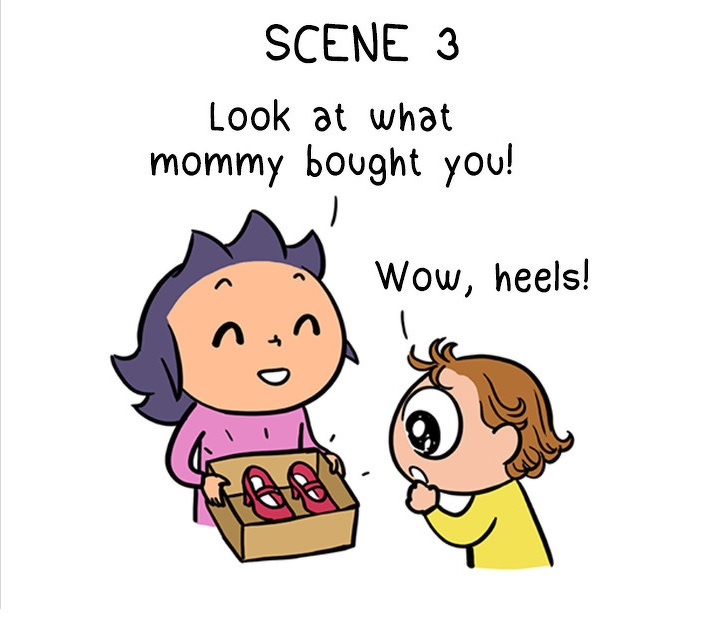 ▼「你看媽媽買了什麼給你!」「哇!是高跟鞋!」