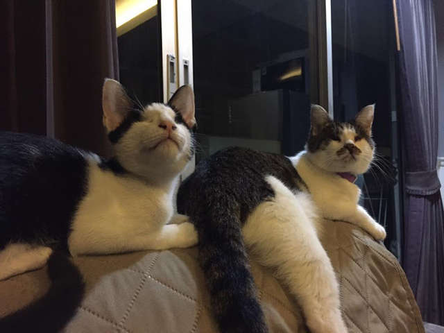 ▼Aldous的故事被po到網路後,引起了很多人的關注。動保團體的工作人員最後選擇一對情侶當Aldous的主人。這對情侶家中有一隻眼睛看不到的雌貓,正好可以與Aldous作伴。Aldous被收養後果然很快樂,兩隻貓咪相親相愛的畫面讓人很感動。